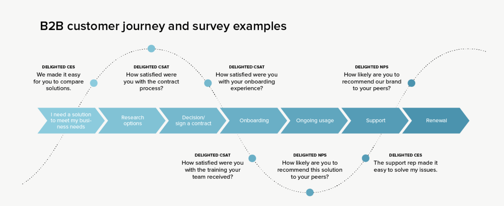 - Customer Service Satisfaction (CSS): Measures customer satisfaction with post-sales support. Usually with survey score sent during onboarding.